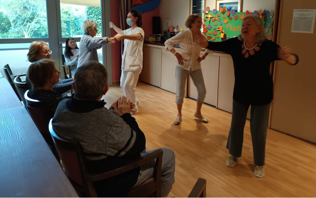 A Porquerolles, unité de vie protégée de Notre Dame de la Paix, maison de retraite familiale médicalisée, un atelier d’expression corporelle a lieu deux jeudis par mois.