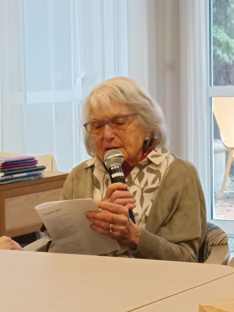 Né d’un concours de poésie, l’atelier « A vos plumes ! » a duré plus d’une année durant laquelle ont eu lieu échanges sur des thèmes donnés, mise en forme des notes prises, illustrations des écrits. Des résidentes ont lu certains poèmes. Un goûter a clôturé cet après-midi littéraire et convivial.